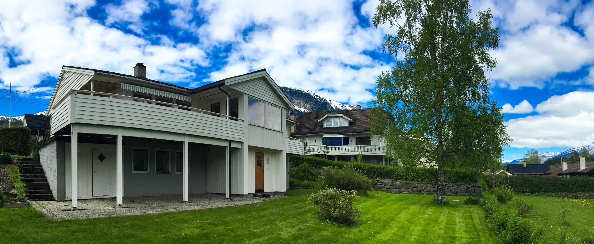 El caso es que estaba yo este domingo, mi primer domingo en Noruega, en mi pequeño hogar de alquiler. Es un apartamento ubicado en la planta baja de la casa de una familia noruega. Da directamente a un jardín y tiene vistas al río y a las montañas.